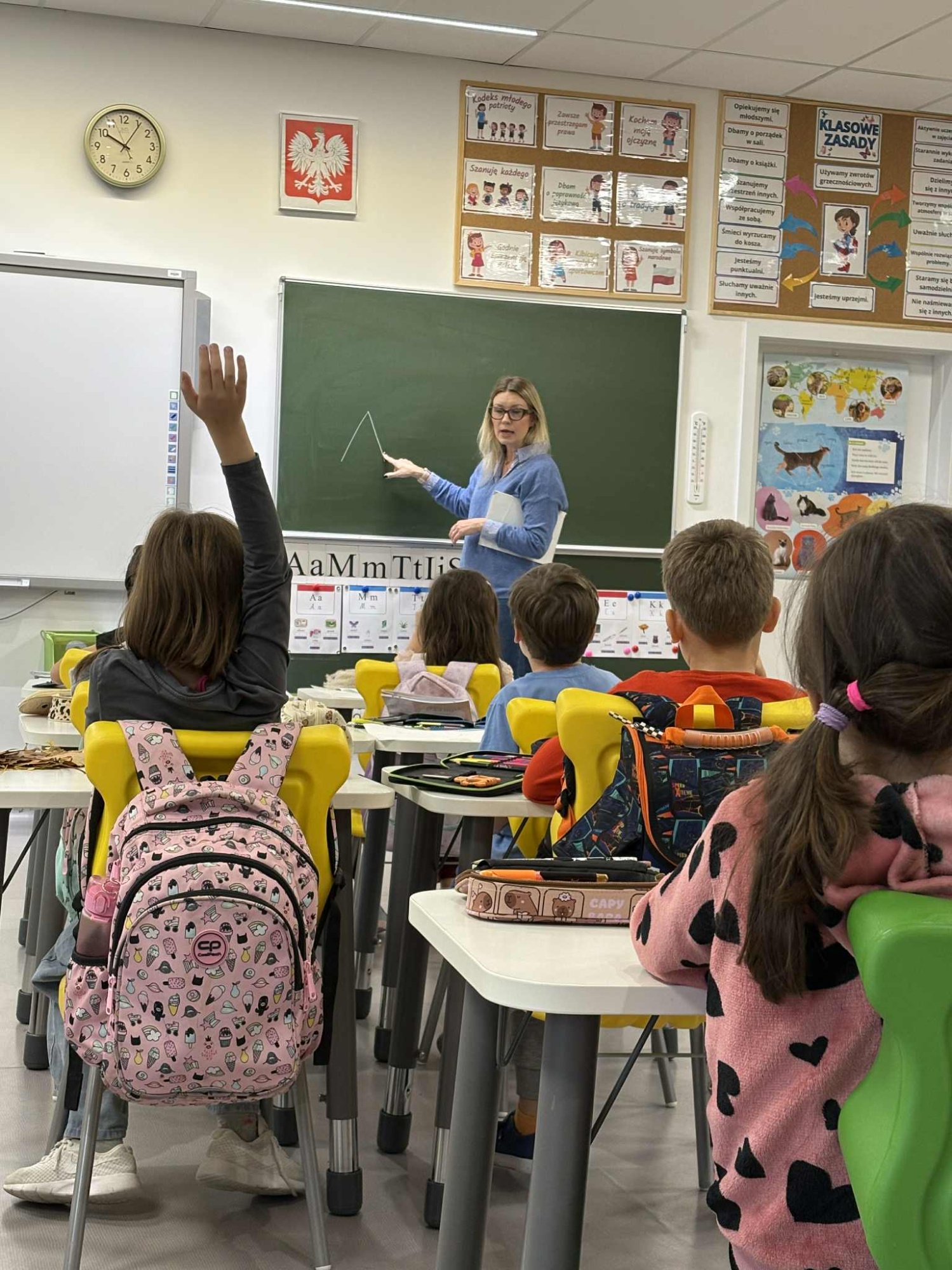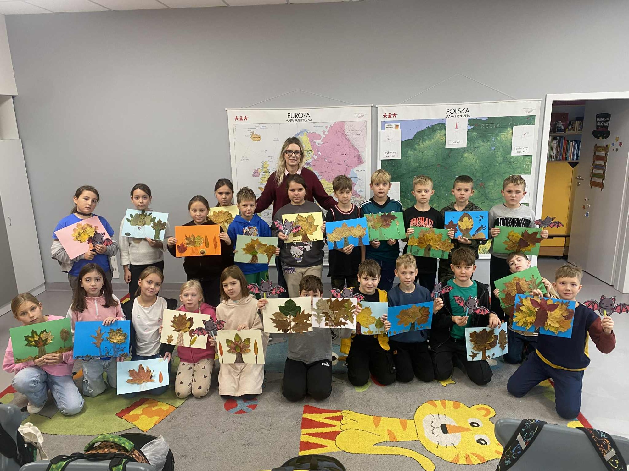 W ramach projektu „Rodzic ekspertem na zajęciach” uczniowie klasy 1b uczestniczyli w wyjątkowych zajęciach, które poprowadziła mama Gustawa. Tematem spotkania były „Zmiany zachodzące w przyrodzie jesienią”. Podczas zajęć dzieci rozmawiały o oznakach jesieni, obserwowały dary natury i wspólnie zastanawiały się, jak rośliny i zwierzęta przygotowują się do nadchodzącej zimy. Dzięki ciekawym opowieściom, prezentacjom oraz praktycznym przykładom uczniowie mogli lepiej zrozumieć, jak fascynujące są procesy zachodzące w przyrodzie o tej porze roku. Na zakończenie spotkania uczniowie wykonali piękne prace plastyczne z zasuszonych liści, tworząc barwne kompozycje inspirowane jesienną przyrodą. Zajęcia były pełne radości, zaangażowania i inspiracji. Serdecznie dziękujemy mamie Gustawa za poświęcony czas, pasję i chęć podzielenia się wiedzą z dziećmi!