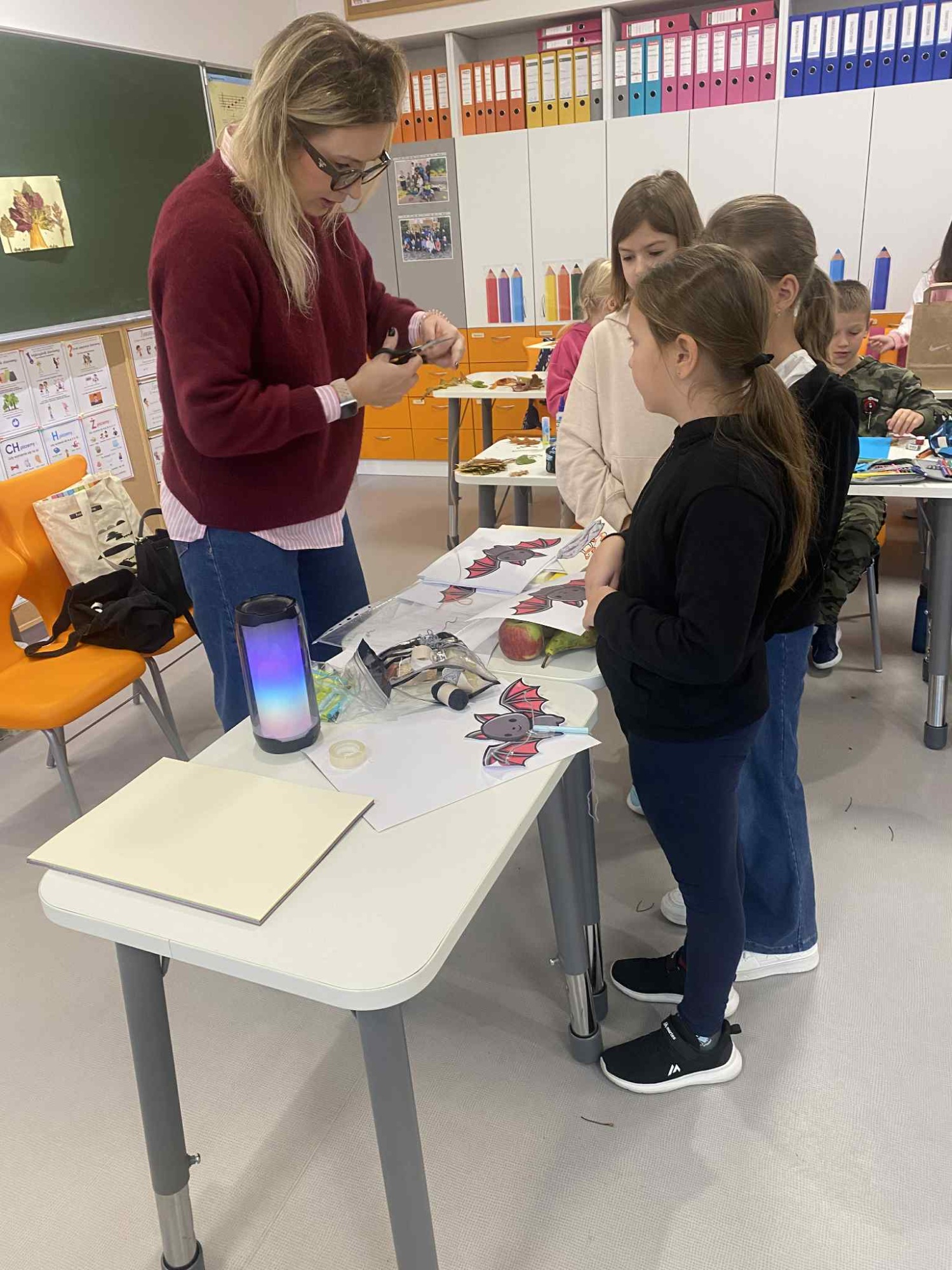 W klasie 3a odbyły się wyjątkowe zajęcia jesienne realizowane w ramach projektu „Rodzic Ekspertem”. Dzieci rozmawiały o zwierzętach przygotowujących się do zimy, poznawały jesienne barwy i owoce, a także z zaangażowaniem wykonywały piękne prace plastyczne – drzewo w jesiennych liściach oraz nietoperza.
